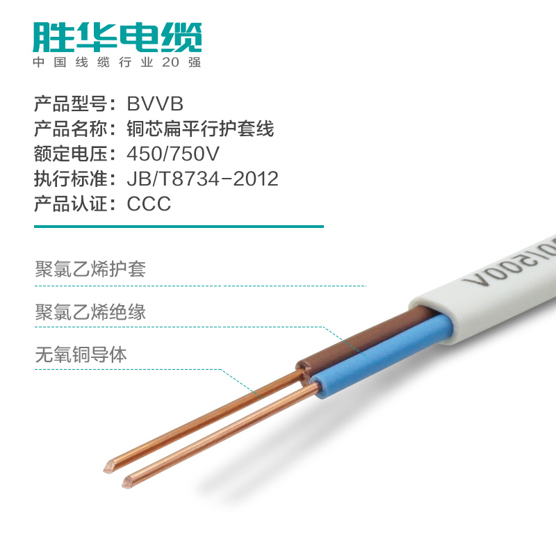 勝華電線BVVB銅芯護套線23芯1.52.54平方平行線