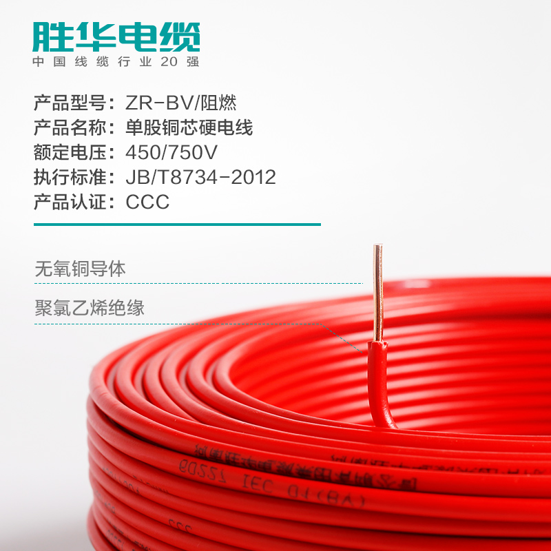 勝華阻燃電線ZR-BV-1.52.546平方國標單股銅芯電線